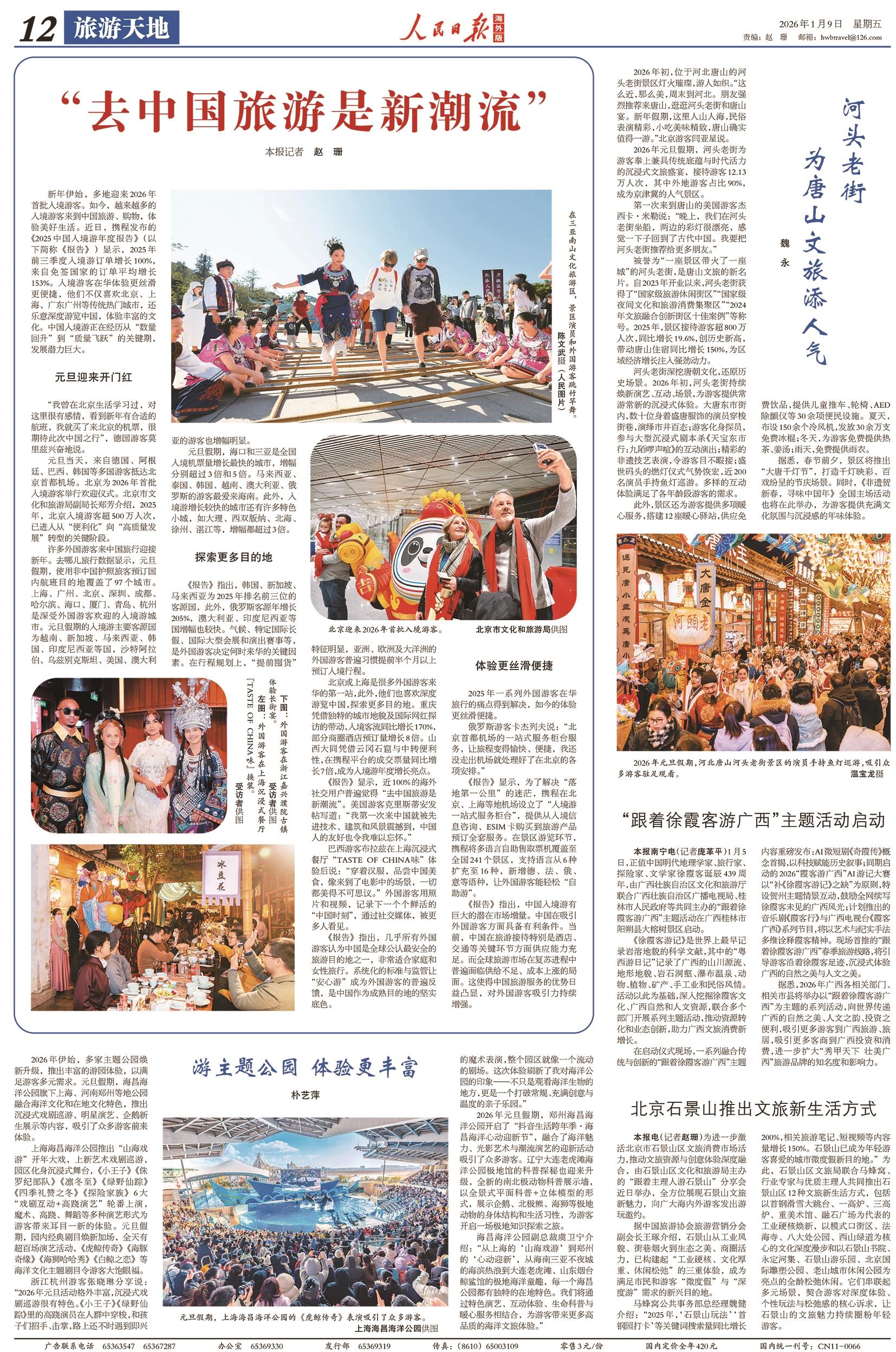 1月9日,《人民日报海外版》12 版、工人日报客户端分别刊发《河头老街为唐山文旅添人气》消息,介绍唐山河头老街火出圈,沉浸式盛唐年味迎客来,京津冀文旅新地标魅力尽显。
