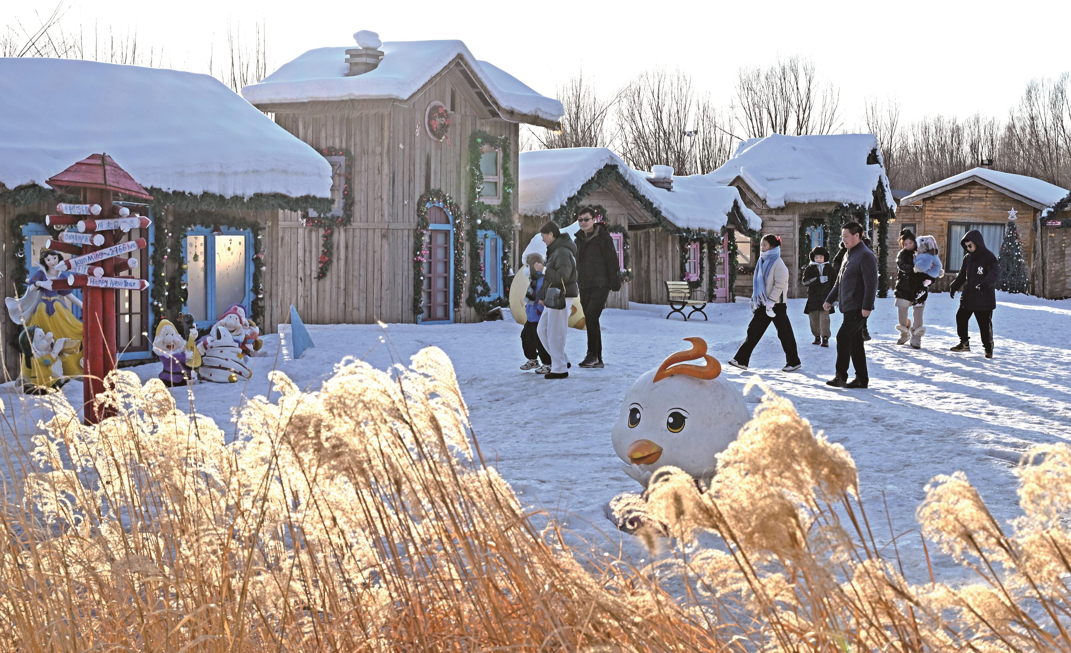位于丰南区半亩方塘的唐山运河冰雪大世界项目占地1200多亩,作为冰雪旅游项目,集雪乡打卡、冰雪游乐、萌宠互动、亲子娱乐、民俗体验于一体,旨在打造津京冀冬季旅游首选目的地,展现当地冰雪文化魅力。图为游客漫步在园区内纯净浪漫的“北欧雪乡”。