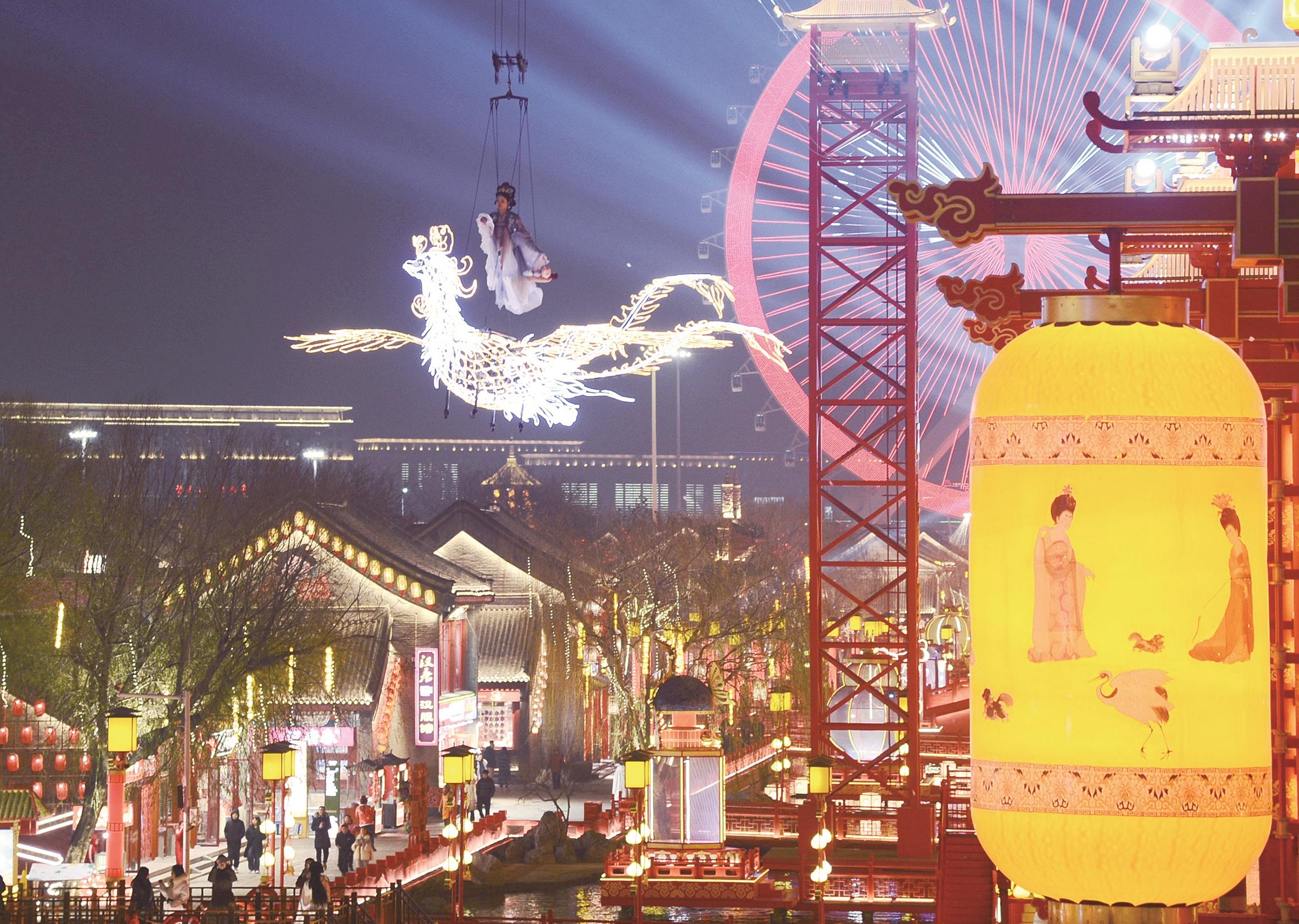 河头老街深挖唐朝文化,还原历史场景,吸引游客纷至沓来,被誉为“一座景区带火了一座城”,是唐山文旅的新名片。据了解,2025年景区接待游客超800万人次,同比增长19.6%,创历史新高,带动唐山住宿同比增长150%,为区域经济增长注入强劲动力。2026年初,河头老街持续焕新演艺、互动、场景,为游客提供常游常新的沉浸式体验。大唐东市街内,数十位身着盛唐服饰的演员穿梭街巷,演绎市井百态;游客化身探员,参与大型沉浸式剧本杀《天宝东市行:九陌啰声喧》的互动演出;精彩的非遗技艺表演,令游客目不暇接;盛世码头的燃灯仪式气势恢宏,近200名演员手持鱼灯巡游。多样的互动体验满足了各年龄段游客的需求。