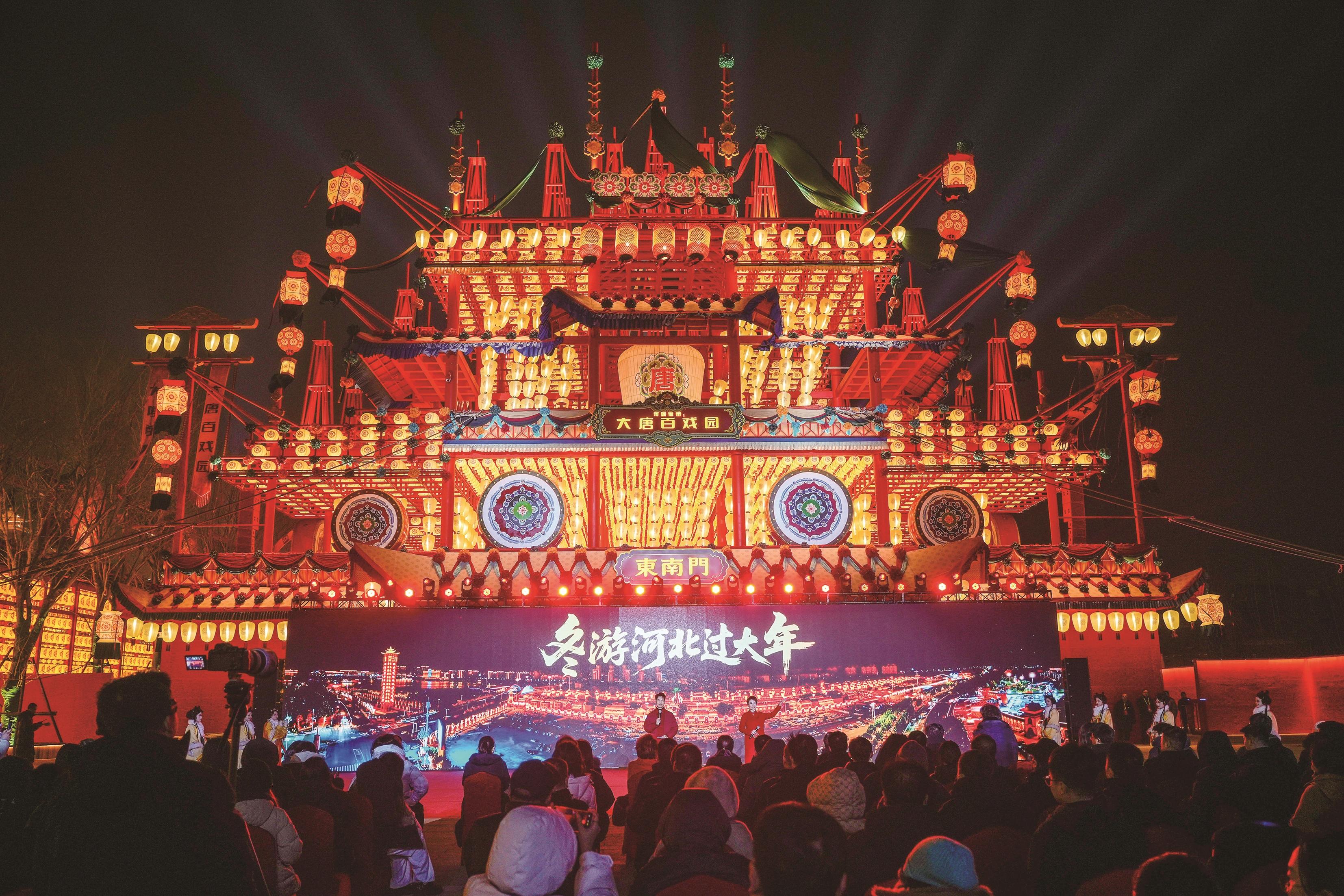 2月4日,河北省唐山市河头老街灯火璀璨、鼓乐喧天,“非遗贺新春”2026冬游河北过大年暨共享景播·文旅优品推广活动正式启动。