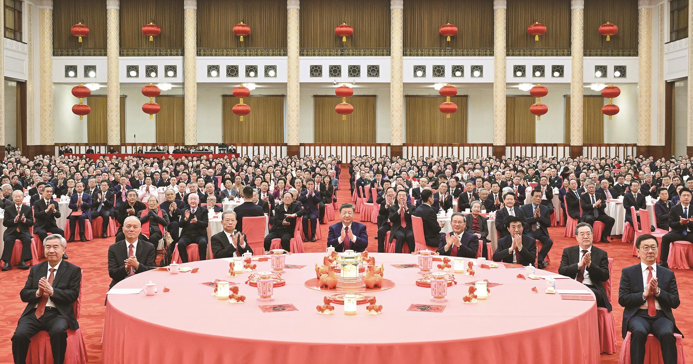 2月14日,中共中央、国务院在北京人民大会堂举行2026年春节团拜会。党和国家领导人习近平、李强、赵乐际、王沪宁、蔡奇、丁薛祥、李希、韩正等同首都各界人士欢聚一堂、共迎佳节。新华社记者 谢环驰 摄