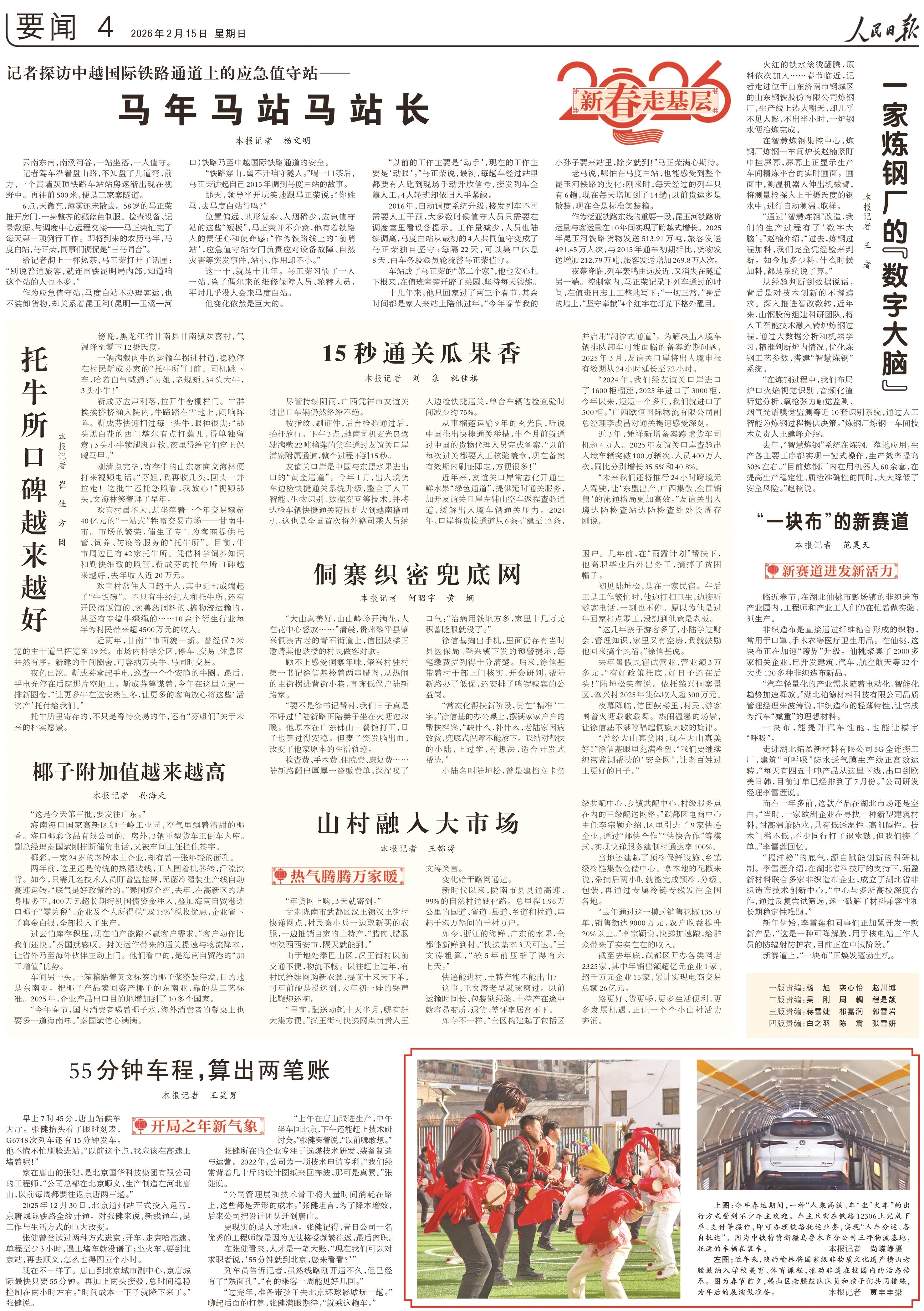 2月15日,《人民日报》4版刊发题为《55分钟车程,算出两笔账》消息,介绍京唐通勤如串门,人才产业双向奔赴。