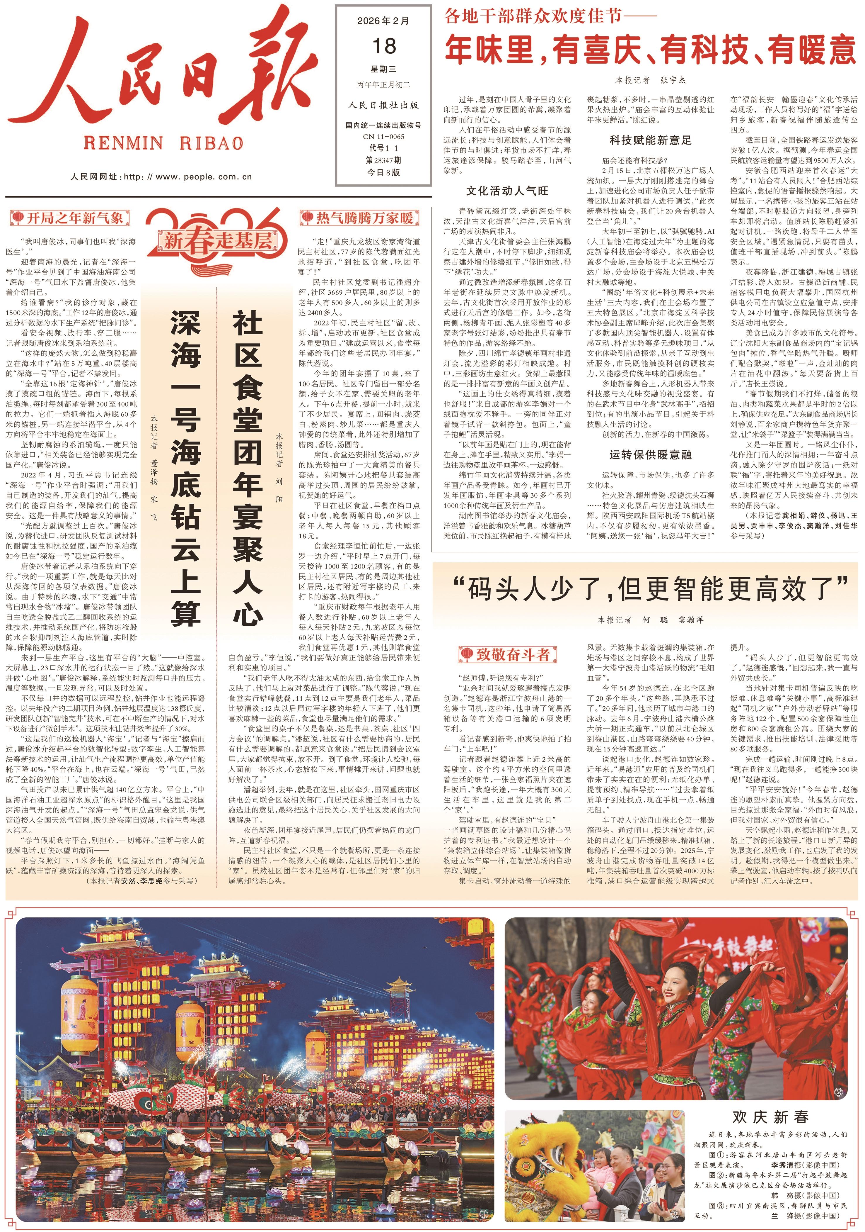 人民日报、经济日报 2月17日、18日,《经济日报》《人民日报》均在1版刊发图片新闻,对我市河头老街进行报道。图为2月15日,游客在河北省唐山市丰南区河头老街景区观看表演。
