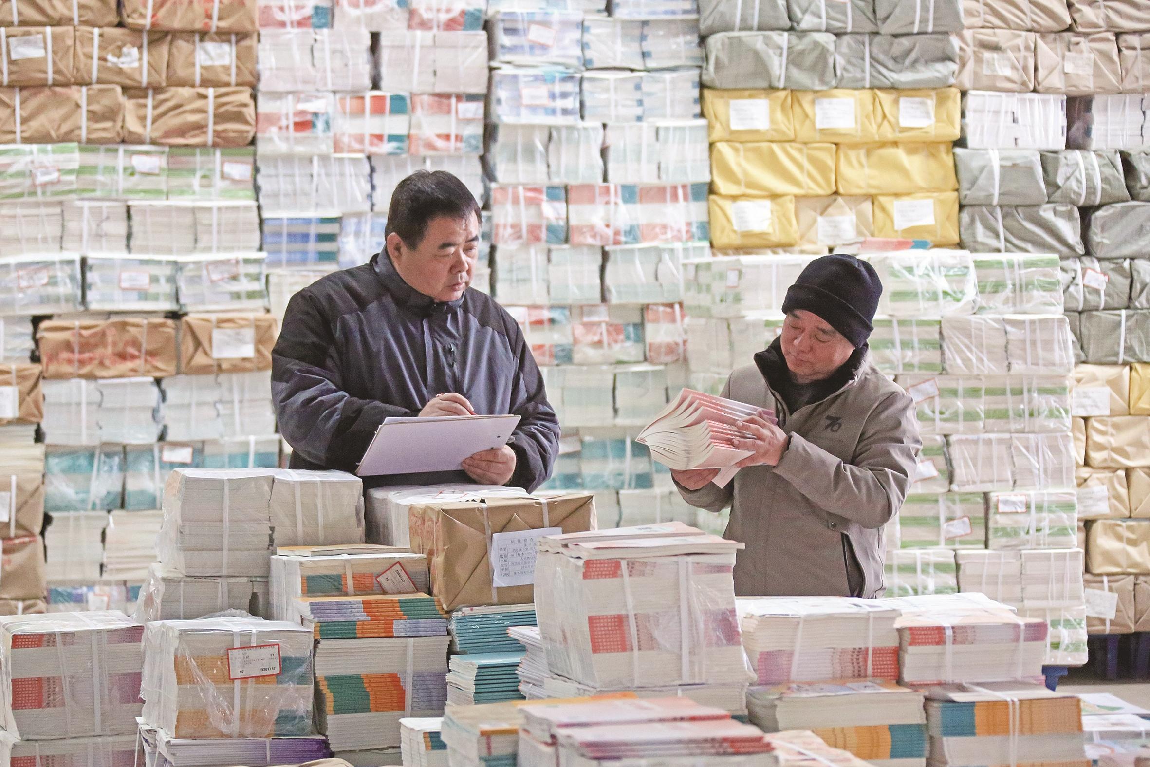 新学期开学在即,玉田县新华书店积极组织工作人员做好中小学教材和教辅资料清点、搬运、分发、配送等工作,确保开学前教材按时到位。图为玉田县新华书店工作人员正在库房登记、清点新学期教材。