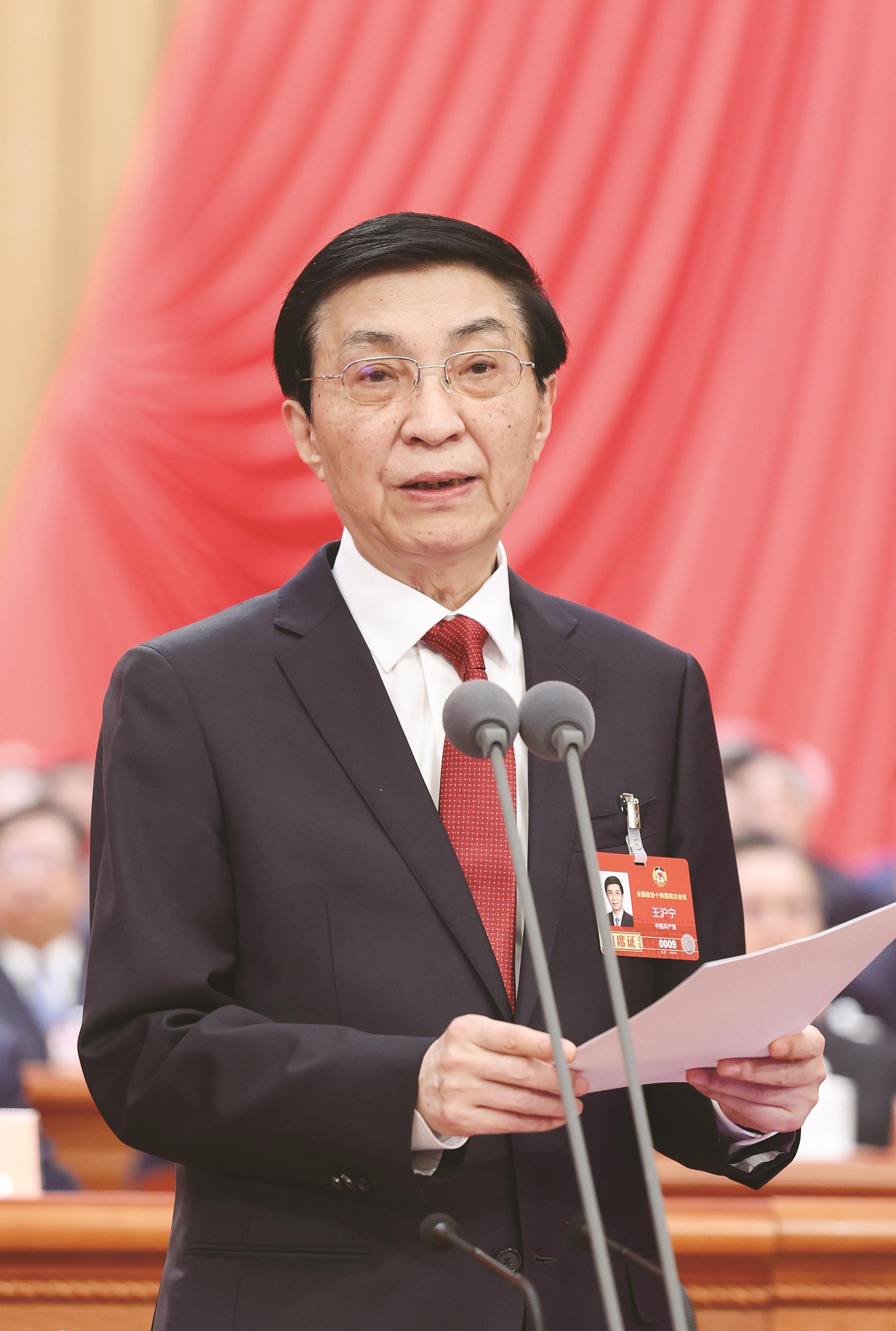全国政协主席王沪宁主持闭幕会并讲话。 新华社记者 黄敬文 摄