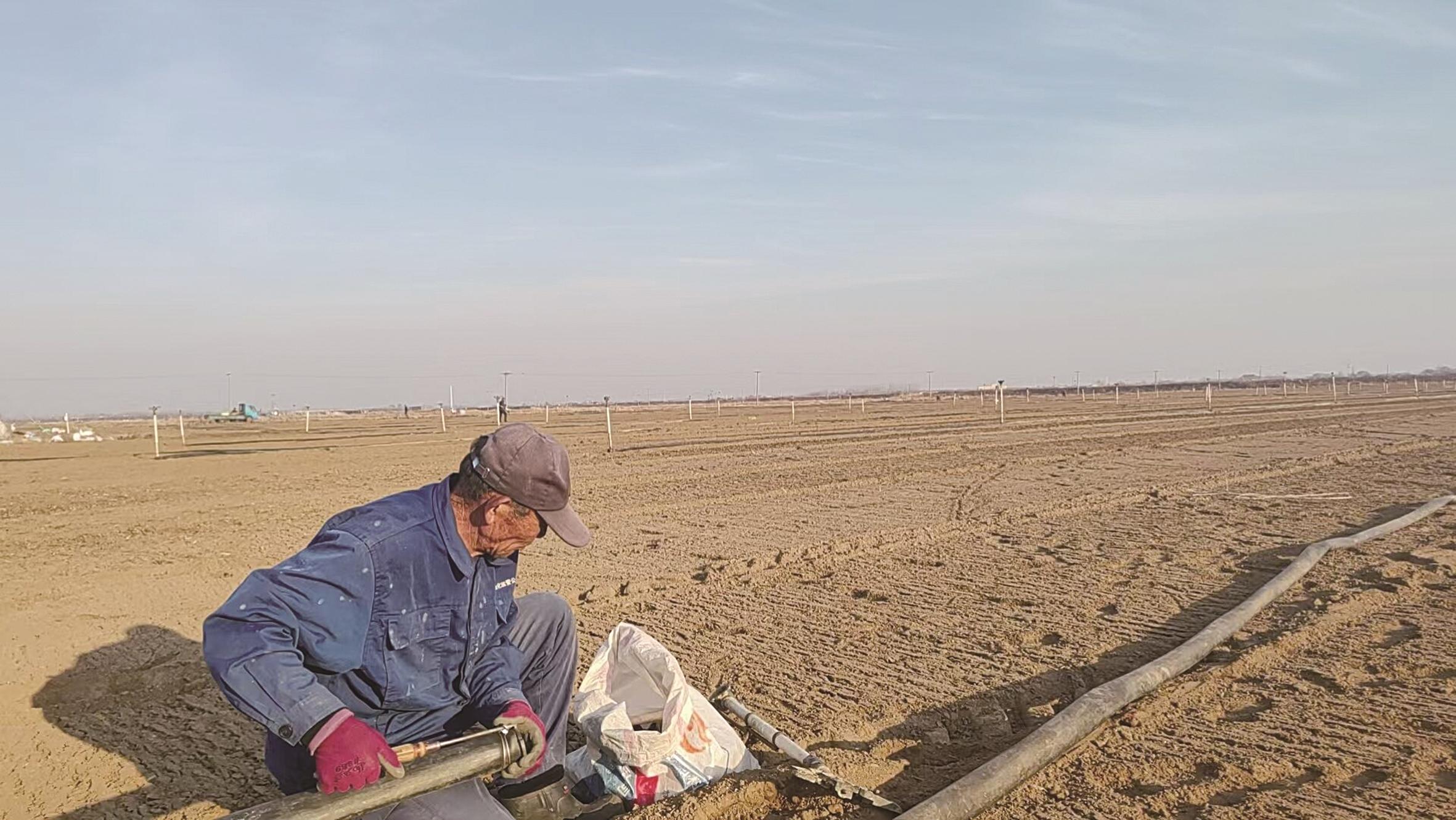 田埂旁,曹立军掏出手机轻轻一点,智能水肥一体化系统随即启动,清澈的水流沿着预设管道精准滴灌到每一粒种子身旁。“以前种地靠经验,现在种地看数据。”曹立军笑着说。