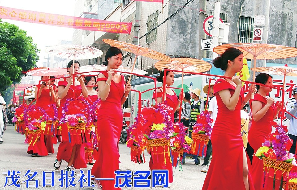 17个方队,各有特色。有各式花车,有舞狮队、舞龙队、彩旗队、彩车队、仪仗队等。来自吴川、信宜两地的飘色,板车上打扮成各种花旦样子的小孩是女士观众们喜欢拍的,为拍到好镜头,她们还不时叫上一声“宝贝”,以吸引小孩子看过来。