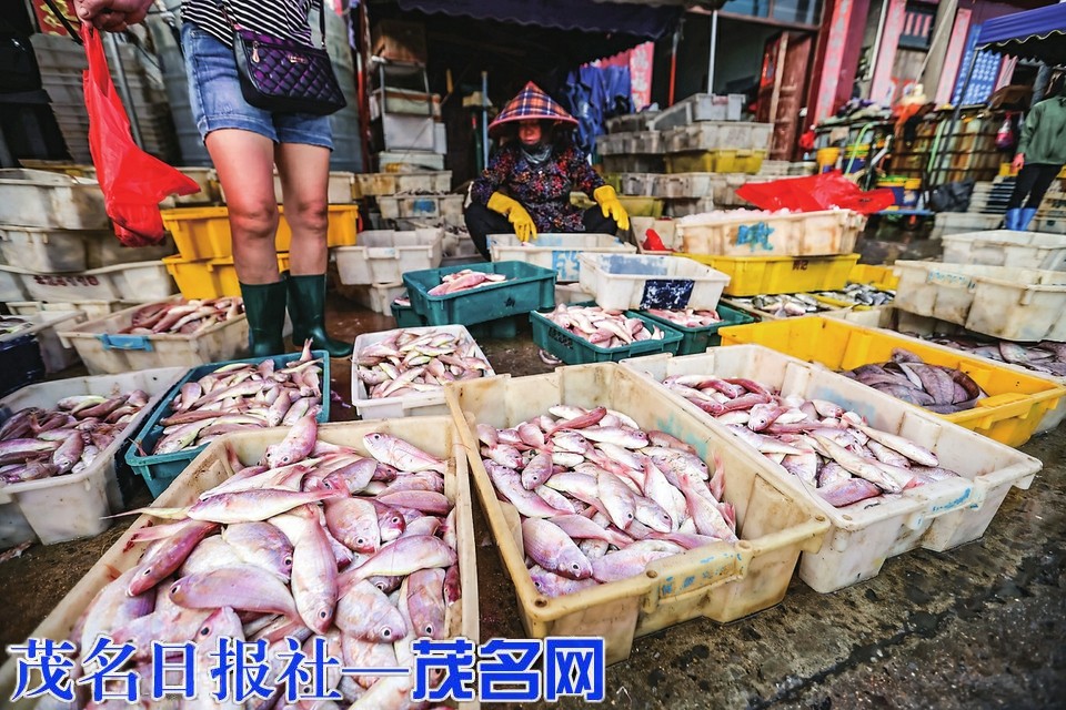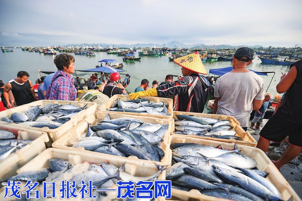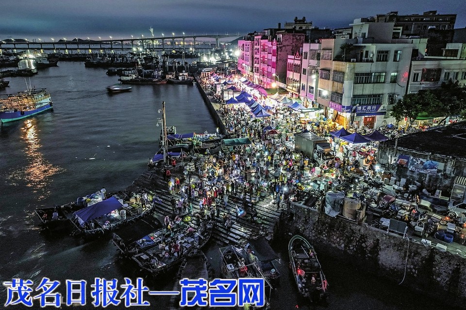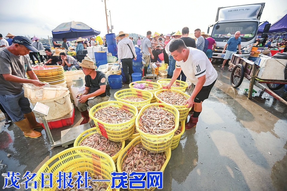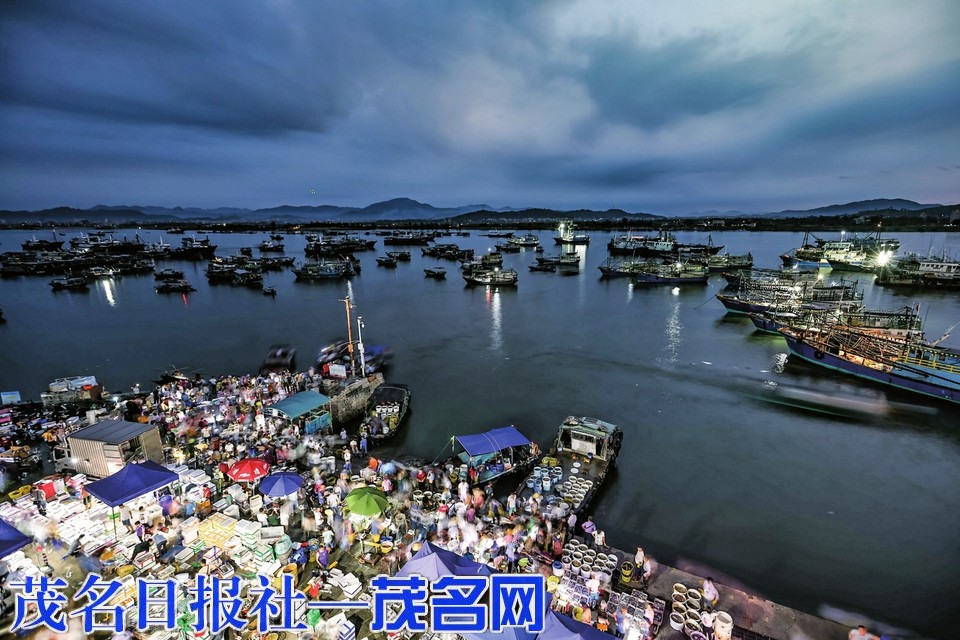 清晨六点,博贺港码头的早市已是一片繁忙景象。