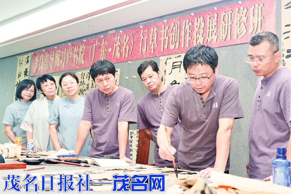 一众书法人士在观摩李良东创作。茂名日报社全媒体记者 张波 摄
