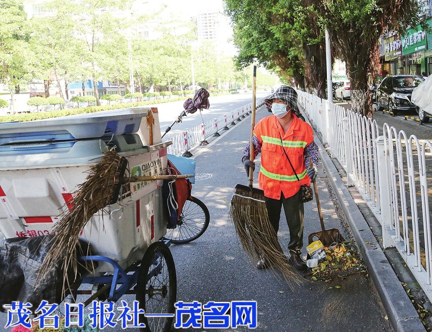 环卫工人坚守岗位,清扫道路。茂名日报社全媒体记者 李颜东 摄