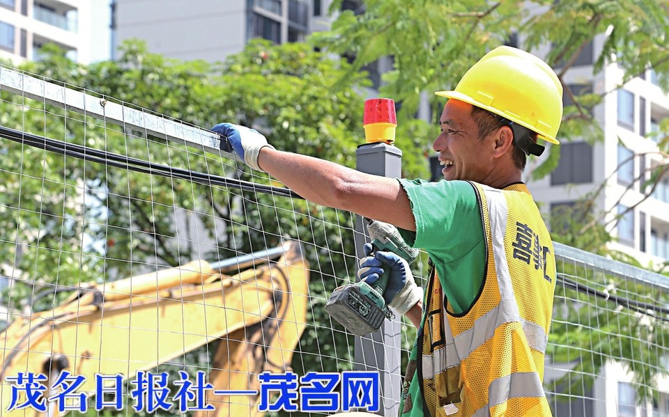 在市中心城区排涝通道改造工程官山五路路段,工人们坚守岗位施工,推进施工进度。茂名日报社全媒体记者 岑稳 摄