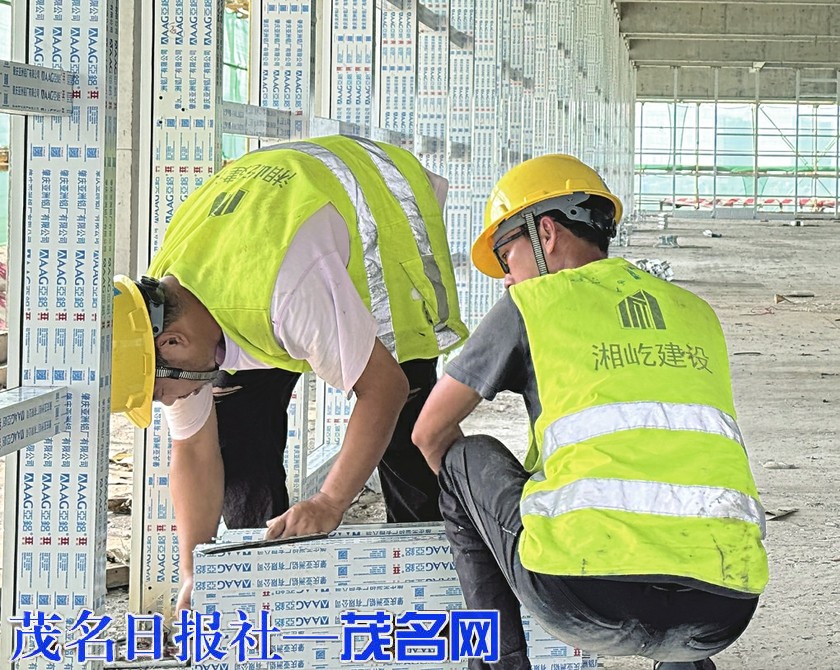 工人在电白区公共卫生建设项目施工。茂名日报社全媒体记者 岑稳 通讯员 莫逊 摄