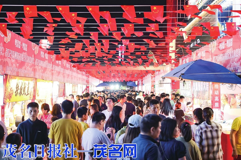 高州市潘州广场北边的小吃街人头攒动。茂名日报社全媒体记者 吴昊 摄