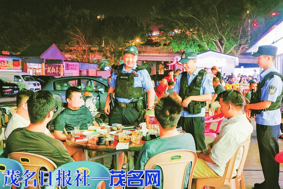 民警在夜宵档巡逻守护平安。通讯员 黄美梓 摄