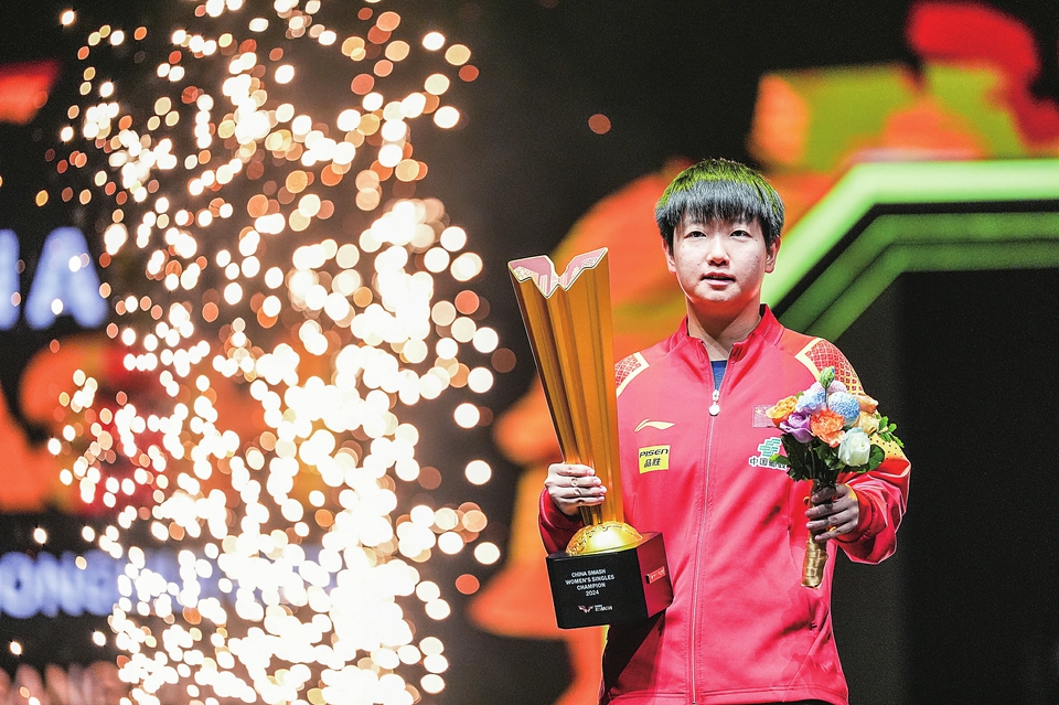 10月6日,孙颖莎在WTT中国大满贯女子单打颁奖仪式上。新华社记者 鞠焕宗 摄