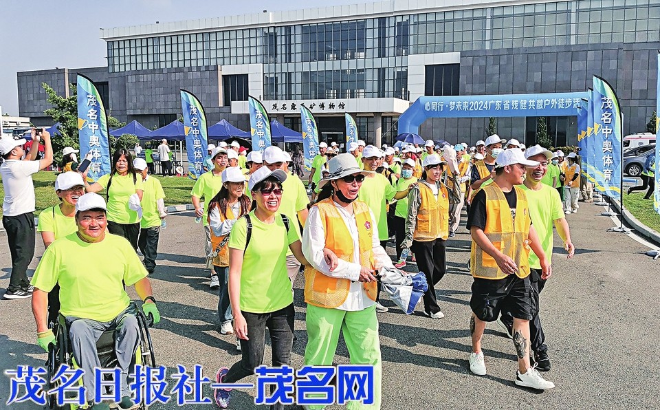 参加活动的残疾人在助残志愿者的陪同下快乐徒步。茂名日报社全媒体记者 岑稳 摄