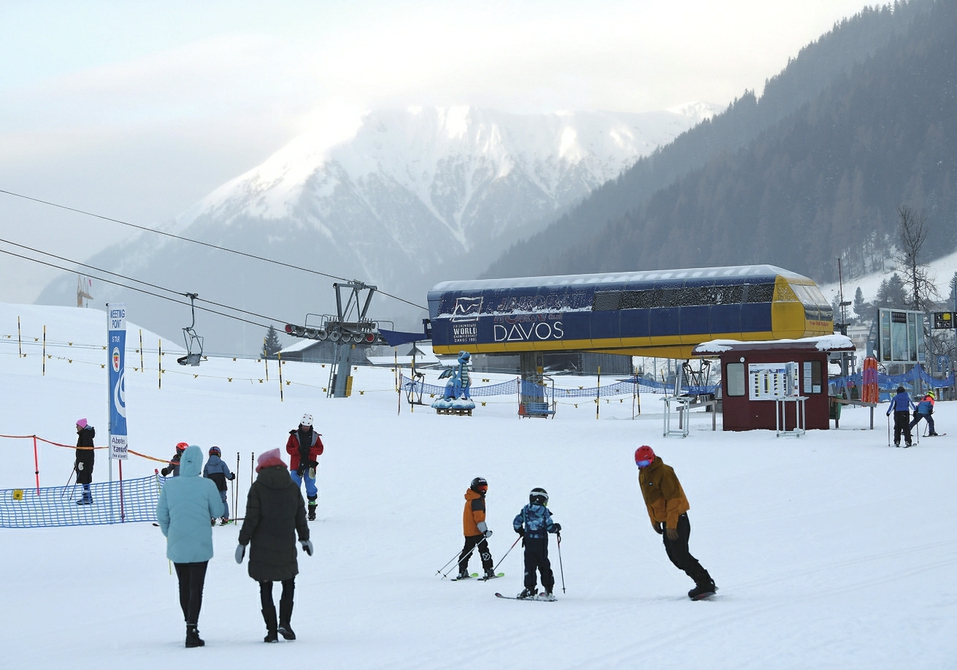 2023年1月20日,人们在雪中的瑞士达沃斯小镇游玩。新华社记者连漪摄