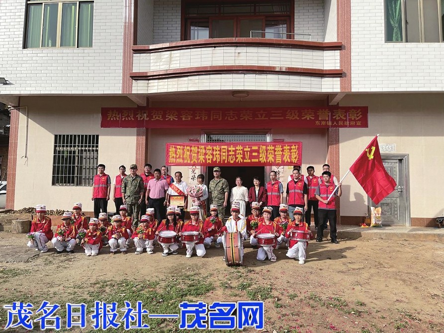茂名晚报讯 记者 黄楚凡 通讯员 梁文棋 一人参军,全家光荣;一人立功,全家荣光!为激发军人军属的责任感和光荣感,在全社会营造拥军优属的浓厚氛围,10月23日下午,高州市人民武装部上校政治委员李凌洁、市退役军人事务局副局长何德国、东岸镇党委政府、镇退役军人服务站、六修村委会、村小学师生代表,为荣立“三级表彰”的现役军人梁容玮家中送去喜报,向军属致以崇高的敬意,共同见证功臣荣光。