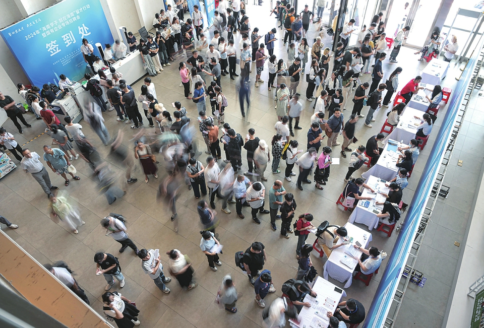 2024年9月28日,众多求职者参加在海口市举办的招聘会。新华社记者 蒲晓旭 摄