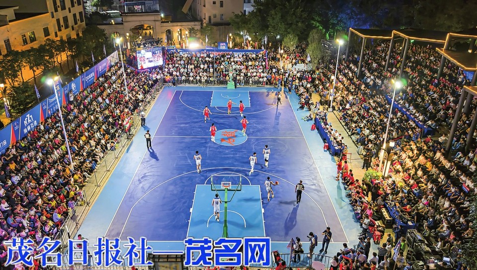 赛场内群情激动,赛场外同样热闹万分。决赛当晚,为让更多市民观众能身临其境观看比赛,主办方特意在石鼓公园前的空地放置了两块大屏幕实时直播、讲解比赛情况。现场人头攒动,大家随着进球一起欢呼雀跃。“我6点多就到了,里面的观众席已经没位置了,没想到现场还能看直播。”刚从河南来茂名工作半年的篮球爱好者张先生在社交媒体上得知今晚的比赛后专门从电白过来。