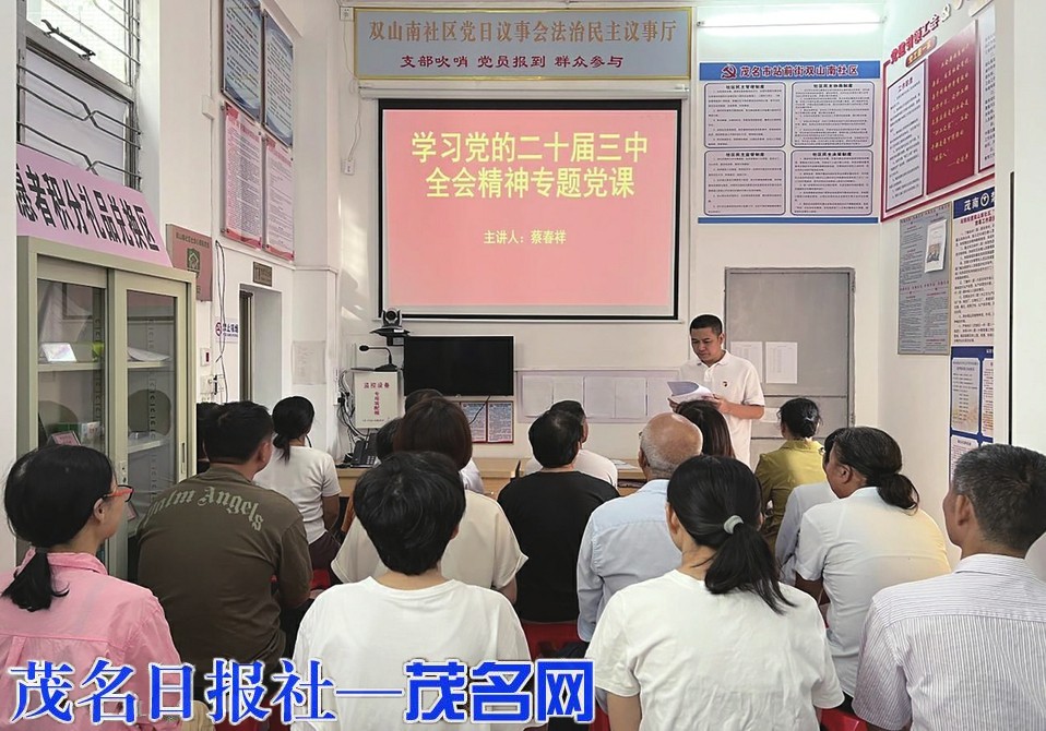 茂名晚报讯 记者 李光耀 通讯员 李华川 近日,茂南区站前街道双山南社区举行学习贯彻党的二十届三中全会精神宣讲报告会,茂南站前街道党工委副书记、站前街道办事处主任、双山南社区党委宣讲团成员蔡春祥作宣讲主题报告。