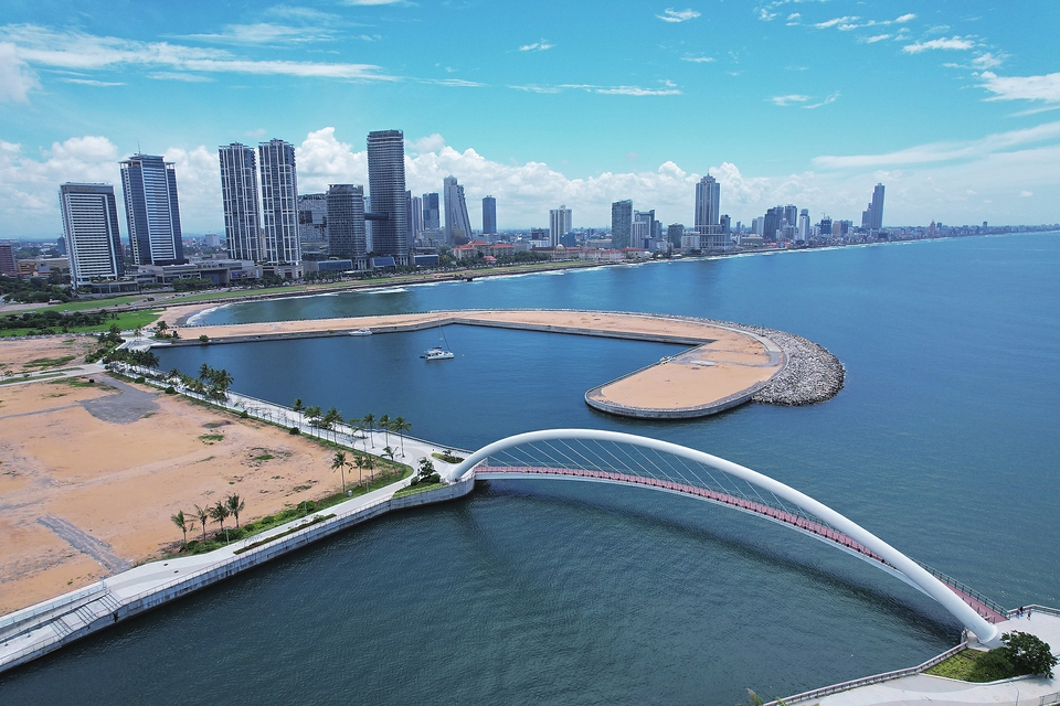 新华社科伦坡12月4日电(记者陈冬书 车宏亮)从斯里兰卡首都科伦坡高空俯瞰,一道3.7公里长的半圆形人工堤坝如同手臂,环抱着科伦坡港口城的海岸。倘若从水下观察,这道防波堤以里更似一座散布着珊瑚和鱼群的“海底花园”。