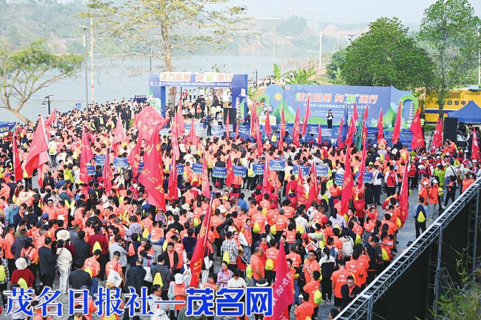 12月7日上午,阳光和煦,“活力高州向‘新’而行”茂名市第十届全民健身徒步活动高州分会场现场人潮涌动,一大早,5000多名市民们就齐聚滨江夜市广场,准备参加由香甄甄·浓香花生油冠名的徒步活动,沿着高州“鉴江印象”东线一路前行,与秀丽江景为伴,尽览高州乡村振兴的绿美成果,为推进“百千万工程”注入澎湃动力。