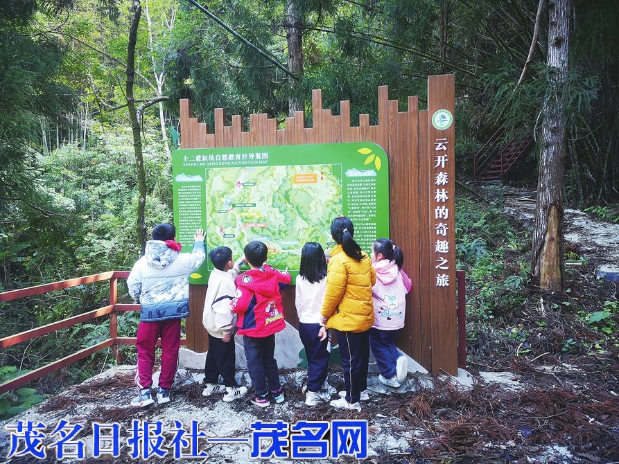 云开山保护区组织中小学生体验云开山森林的奇趣之旅。通讯员 陈富强 摄