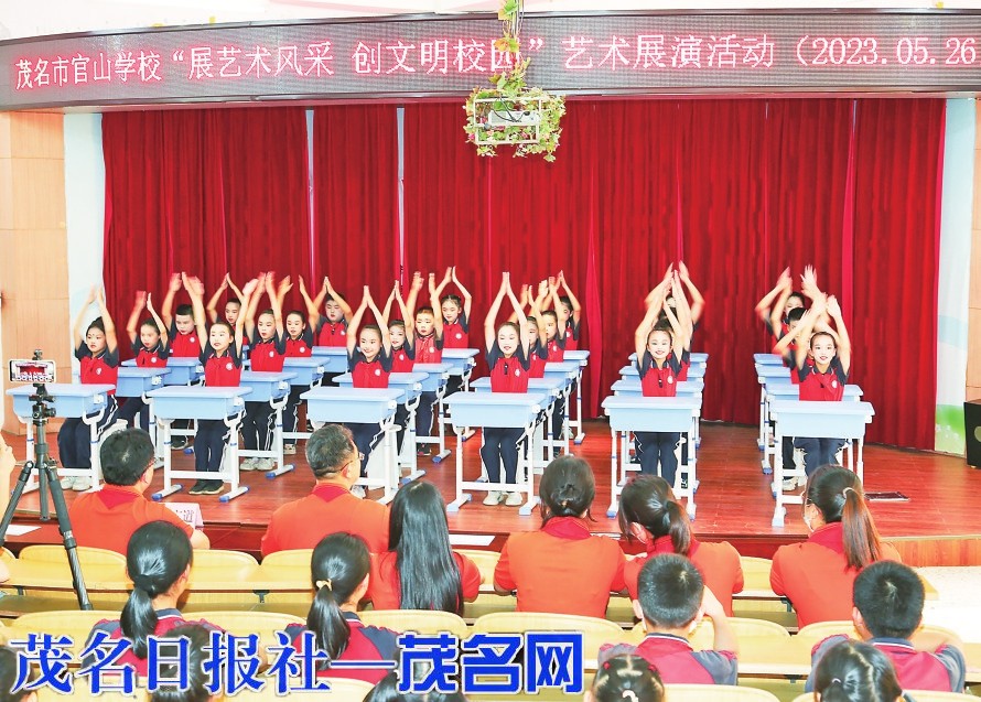 市官山学校学生在艺术展演舞台上表演《课桌舞串烧》。 茂名日报社全媒体记者 岑稳 摄