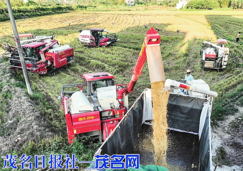 高州市的第二造作物丰收季已接近尾声。近日,在该市镇江镇万亩方全域土地综合整治项目水稻收割现场,稻田沃野,难以看到边际,此时绝大部分水稻已颗粒入仓,仍可看到小部分晚熟水稻在微风中摇曳,等待收割。这是根据实际情况,运用小田变大田、碎田变整田、差田变良田、“林耕置换”“村庄腾挪”“政策集成”等方式方法,使大批良田集中连片,方便机械化耕作,是镇江镇万亩方土地科学整治的重点内容。预计可形成集中连片耕地1.4万亩,现已新增耕地4300亩,亩产增加约10%,当地农民省时省工,首获丰收。此举强化耕地数量、质量、生态“三位一体”保护,解决当前经济发展与耕地保护供需等矛盾,助力“百千万工程”走深走透。