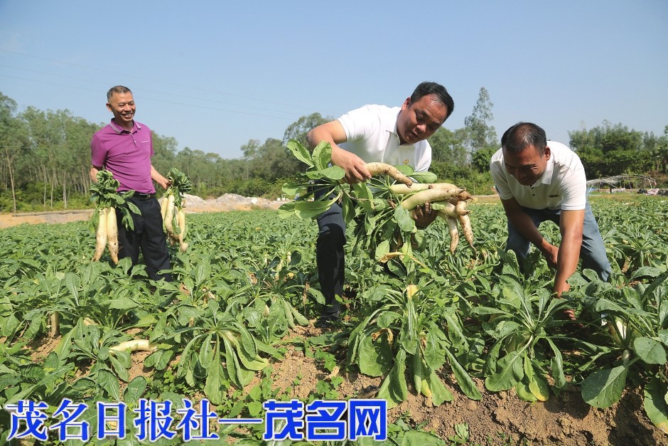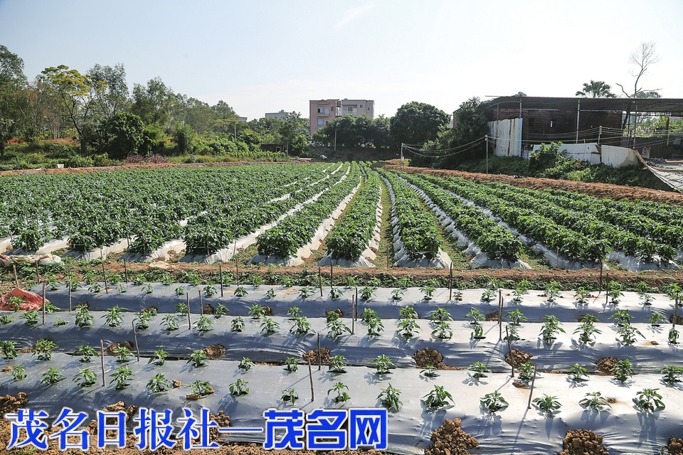 数十亩撂荒地种上菜椒、萝卜等农作物。 茂名日报社全媒体记者 岑稳 摄