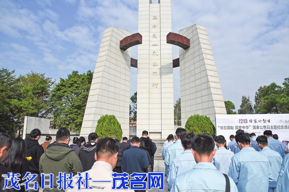 茂名晚报讯 2024年12月13日,是我国第11个南京大屠杀死难者国家公祭日。为增强广大市民铭记历史、勿忘国耻、以史为鉴的爱国意识,激发深厚的爱国主义精神,传递为中华民族伟大复兴而不懈奋斗的正能量,当天上午,由中共茂名市委宣传部主办,茂名市退役军人事务局、茂名日报社协办的“勿忘国耻圆梦中华”国家公祭日主题纪念活动在茂名市烈士陵园举行。