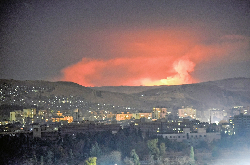 12月14日在叙利亚首都大马士革拍摄的遭以色列军空袭后爆炸产生的浓烟。新华社发(蒙塞夫·梅马里摄)