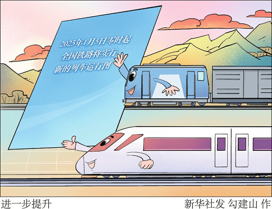新华社北京12月22日电(记者 樊曦)记者22日从中国国家铁路集团有限公司获悉,2025年1月5日零时起,全国铁路将实行新的列车运行图,新图车票于2024年12月22日起陆续发售。调图后,全国铁路安排图定旅客列车13028列,较现图增加230列;开行货物列车22859列,较现图增加91列,铁路客货运输能力、服务品质和运行效率进一步提升。
