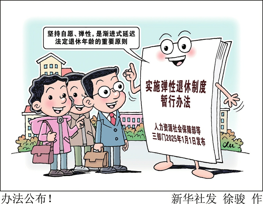 1月1日,人力资源社会保障部等三部门发布《实施弹性退休制度暂行办法》,就弹性退休的办理程序、基本养老金领取等方面作出明确规定。
