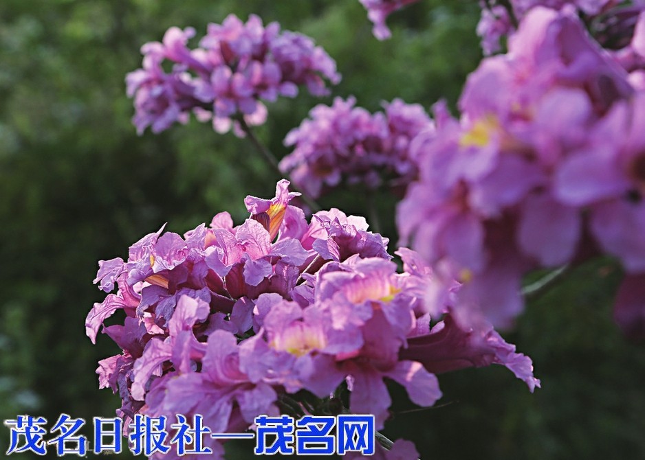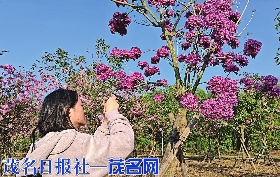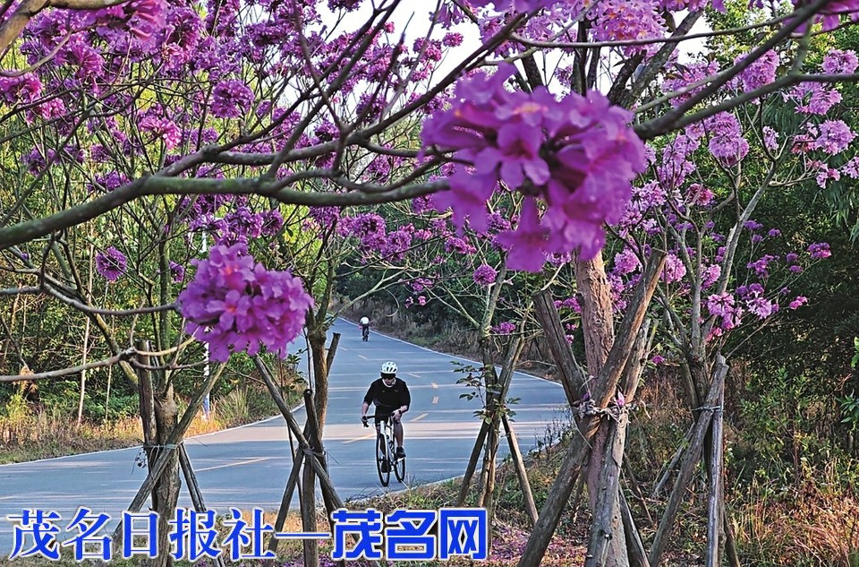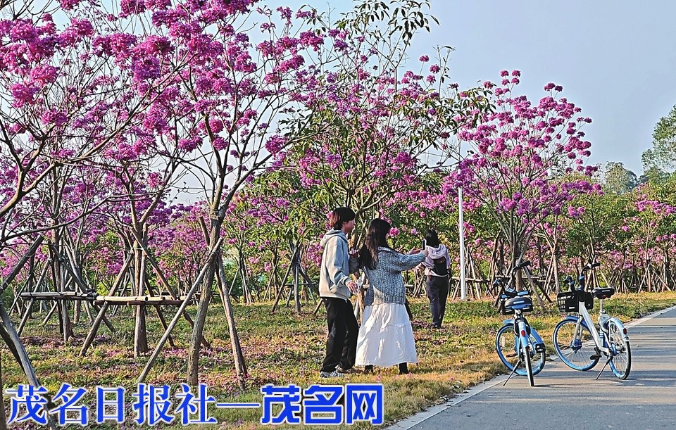 这片美丽的紫花,藏在露天矿生态公园西北面,导航“茂名检察林”可开车到达附近。那里有近200棵紫花风铃木,近日迎来了盛放期。这些紫色风铃花,有深紫色也有浅紫色,每一朵都很大,雍容华贵、大气多姿。不少市民游客和骑行爱好者得知后,纷纷前往打卡拍照。
