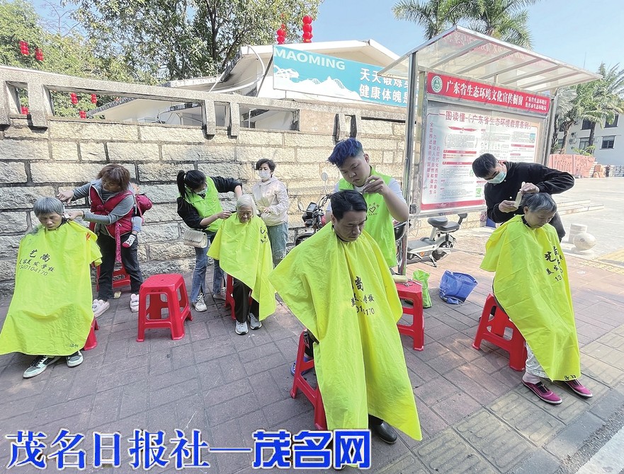 昨日,茂南区义工协会的义工一大早来到城中便民服务站为居民免费剪头发、检查口腔,为居民送上公益便民服务。茂名日报社全媒体记者 李颜东 摄