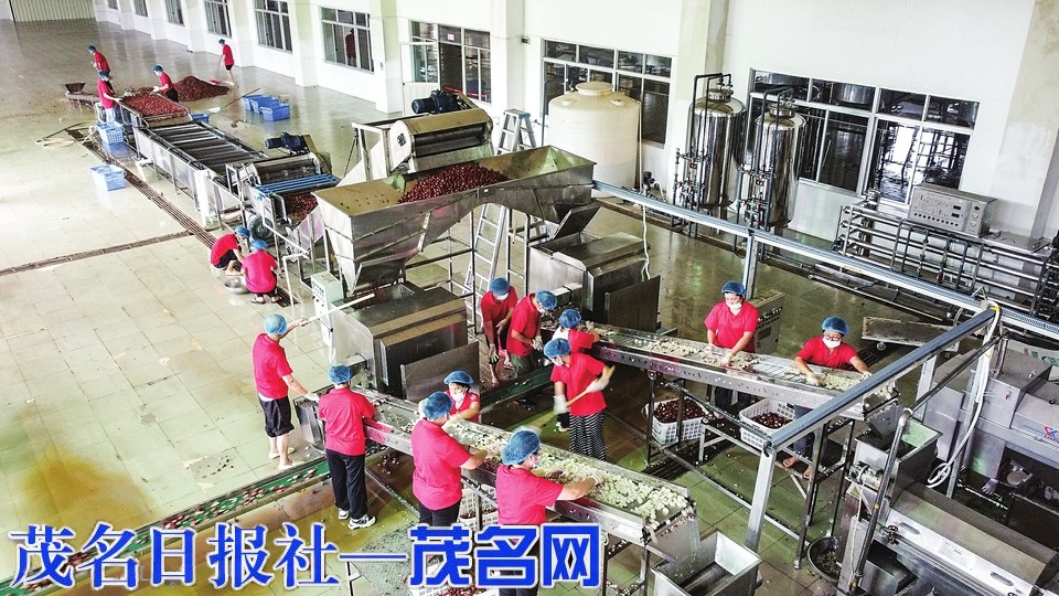 ▲新鲜荔枝脱壳去核榨汁生产线。