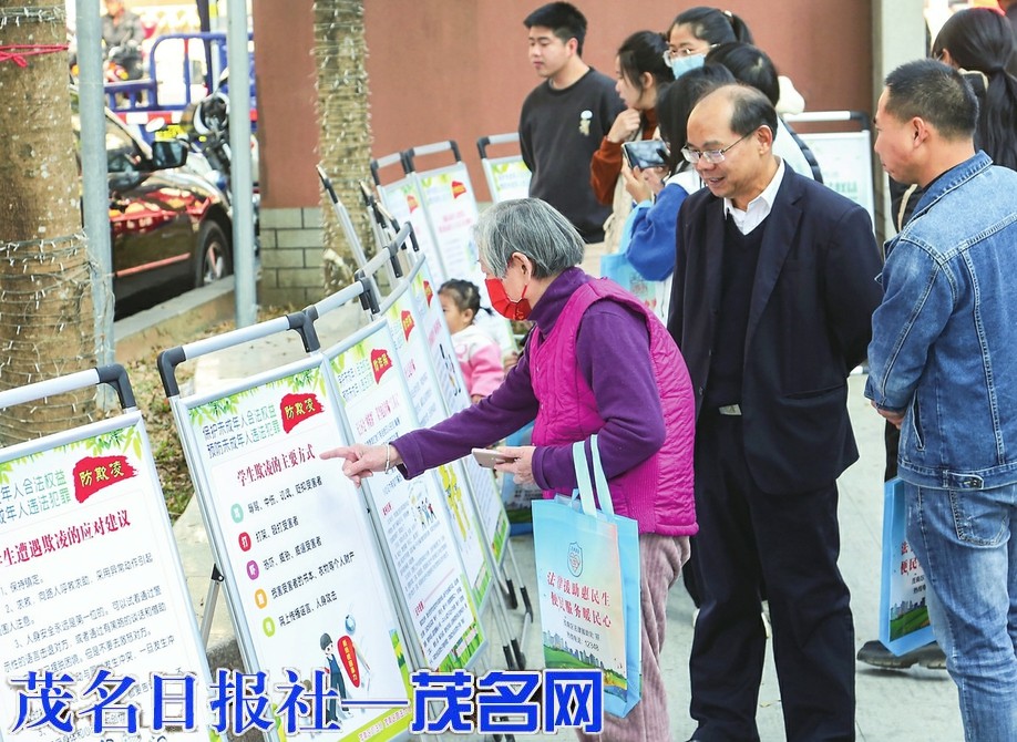 市民观看法律宣传展板。茂名日报社全媒体记者 李颜东 摄