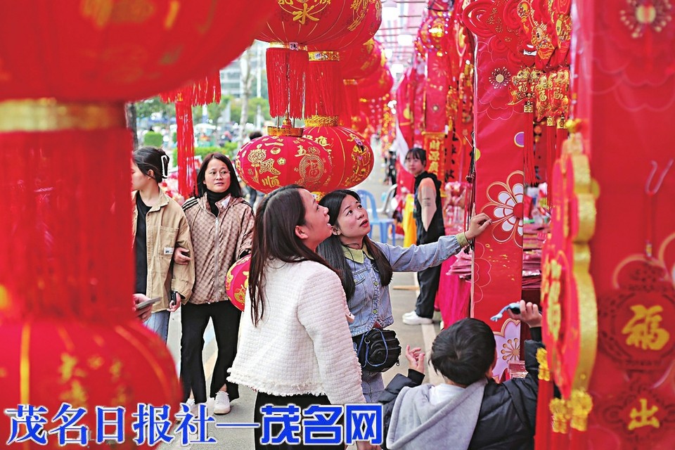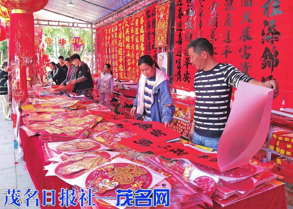 桔、购年货……随着春节脚步临近,茂名处处洋溢着过年的氛围。今年是春节被列入联合国教科文组织非遗名录后第一个春节,茂名市区的春联花街一开,熟悉的年味扑面而来,马上吸引众多市民前来选购和观赏,其中不乏寻年味的年轻人。