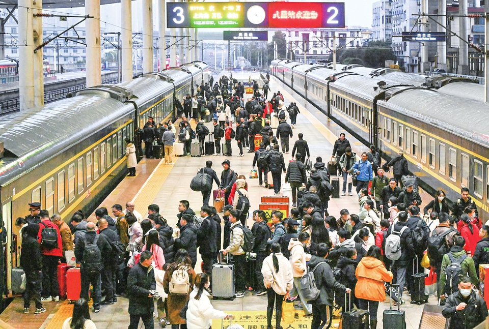 1月25日,旅客从湖北省武昌火车站乘车。新华社发(胡学军 摄)