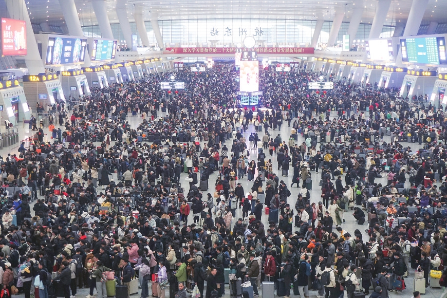 1月25日,旅客在铁路杭州东站候车大厅候车。新华社发(龙巍 摄)