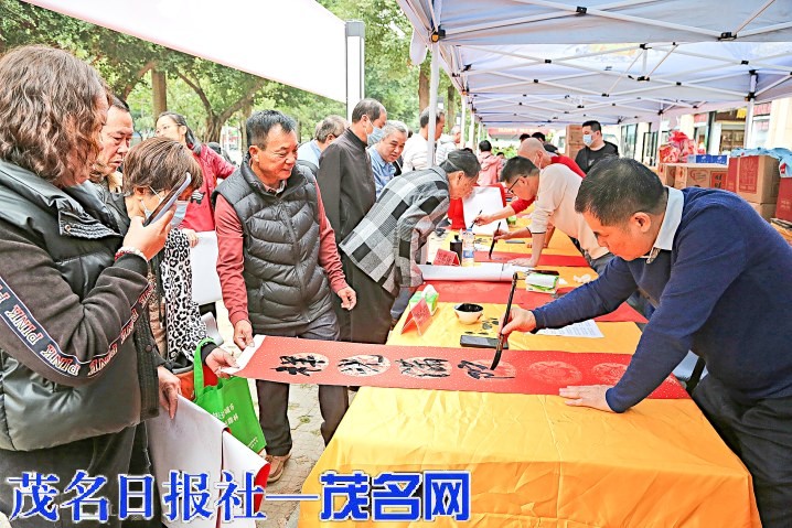 24日,明湖百货有限公司携手茂南区美术家协会举办2025明湖“恭喜发财”春联免费大派送活动,茂南区美协组织了10多名书画家现场泼墨挥毫,翰墨送福,应街坊市民的要求题写了一幅幅寓意美好的春联,一连三场活动共免费派送春联300多幅,满足了社区群众春节文化需求。 茂名日报社全媒体记者 岑稳 摄