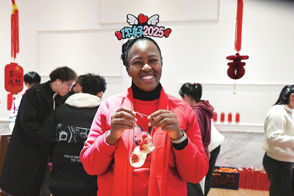 新华社上海2月4日电(记者 陈爱平)进入农历蛇年,留学中国的南非女孩文娜雅寝室里多了一盏竹编的祈福小灯笼——这是她在春节前夕,在上海财经大学留校学生年夜饭活动中亲手制作的。
