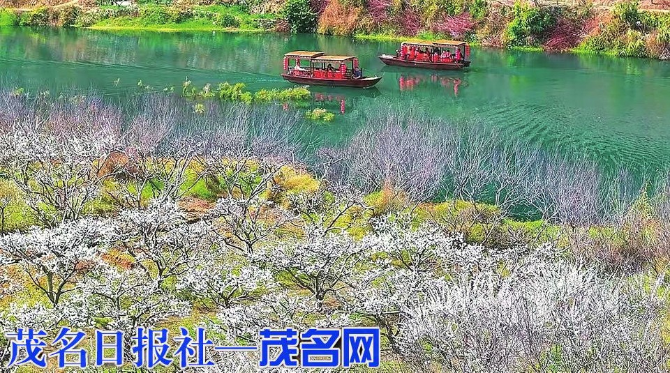 游客在钱排双合坐花船赏李花。通讯员 谭世聪 摄 详见04版