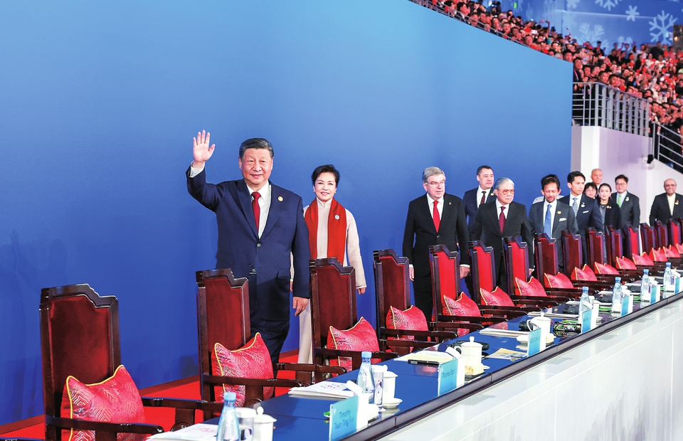 2月7日晚,第九届亚洲冬季运动会在黑龙江省哈尔滨市隆重开幕。习近平等党和国家领导人出席开幕式。新华社记者王晔摄