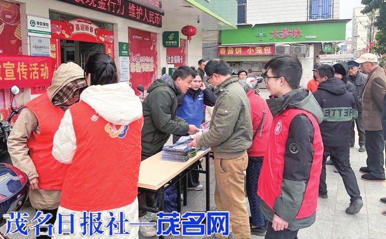 茂名晚报讯 为切实促进辖区居民就业增收和筑牢全民禁毒、反诈、反邪教安全防线,2月7日上午,信宜市池洞镇人民政府联合池洞居委会、广东宏芯睿展有限公司,在池洞镇邮政储蓄银行门前广场举办了一场别开生面的综合宣传活动。活动以“春风送岗助就业,平安建设护万家”为主题,通过“企业招聘+安全宣传”双线并行的形式,为广大群众送岗位、送政策、送安全,吸引了数百名群众参与。