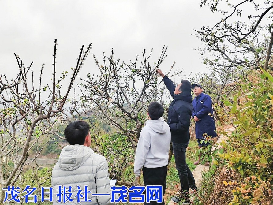 镇村干部深入田间地头察看三华李扬花结果情况。通讯员陈子楷 供图