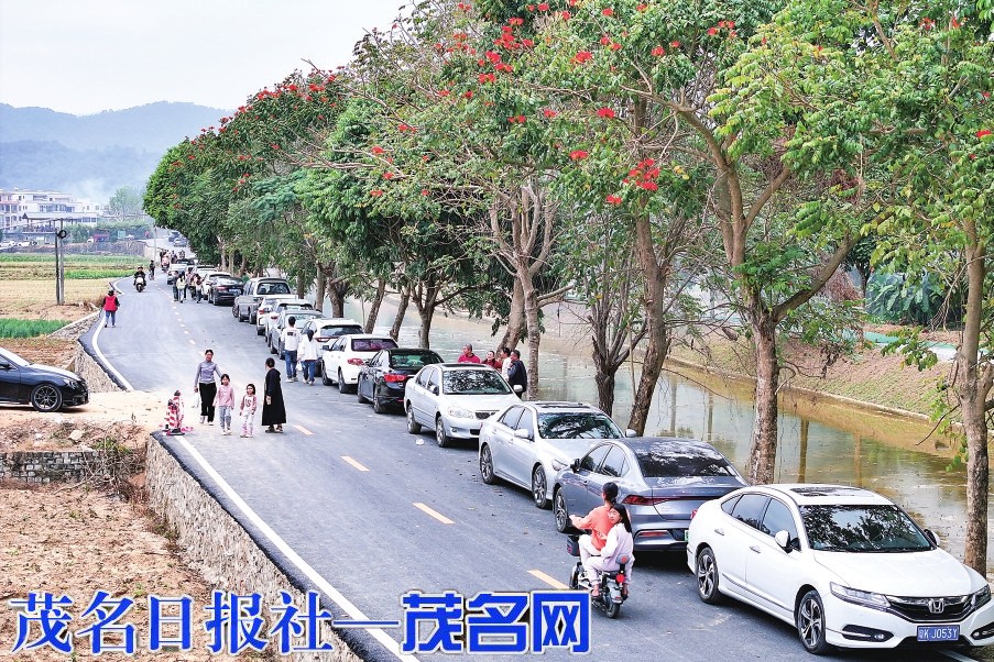 2月11日,尽管当天是一个工作日,明堂村的景观沙滩依然游人如织,自驾游的游客车辆更是一直排到了景观沙滩外两三公里的路上,村干部值守在多个路口维持交通秩序。“春节期间,自年初一起,每天中午12点一过,茂名市内外的游客陆续前来,每天人流量约5000多人。”在景观沙滩巡逻的明堂村委会党支部书记、主任梁炎伟说。