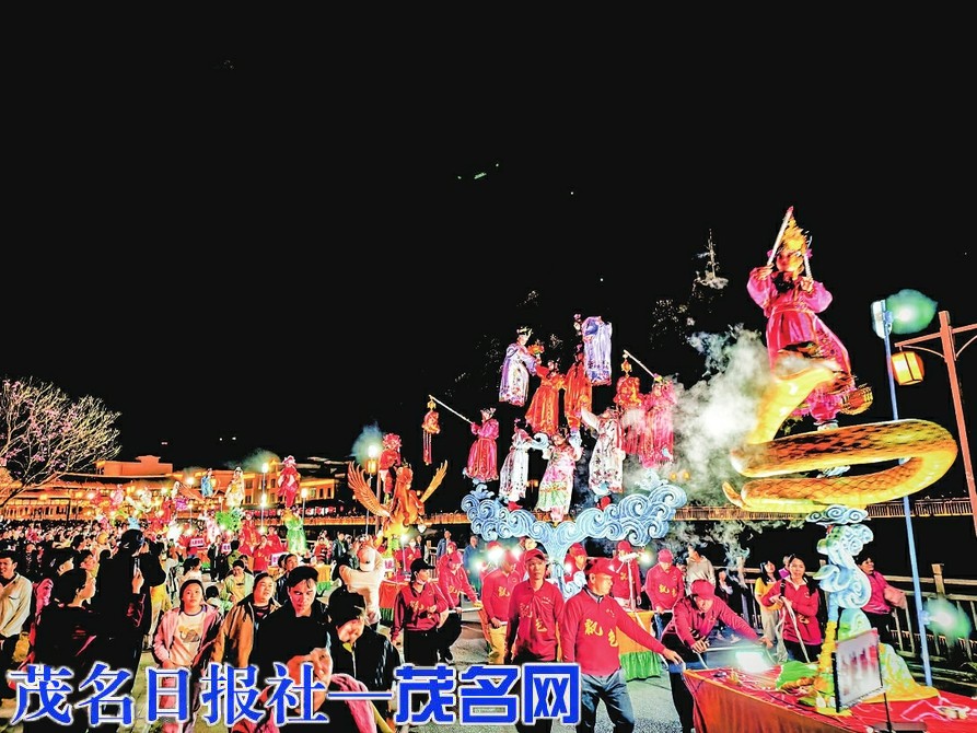 茂名晚报讯 通讯员 陈子楷 记者 和沛蓉 2月15日,春节假期后上班的第二个周末。信宜市名声在外的农文旅景区钱排镇“山水双合”,在继春节期间和元宵节举办系列民俗非遗文化活动后,再次举行“舞龙+飘色巡游”非遗活动,以其独特的文化魅力点燃“山水双合”的周末夜。是夜,“山水双合”再现人山人海、人气爆棚的火热场景。据初步估算,涌入景区的游客达1.5万人次,当中不乏组团而来的粤港澳大湾区游客。